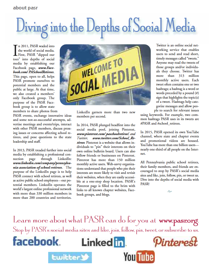 PASR members are part of a state wide organization of retirees who worked for the Pennsylvania public school systems.
